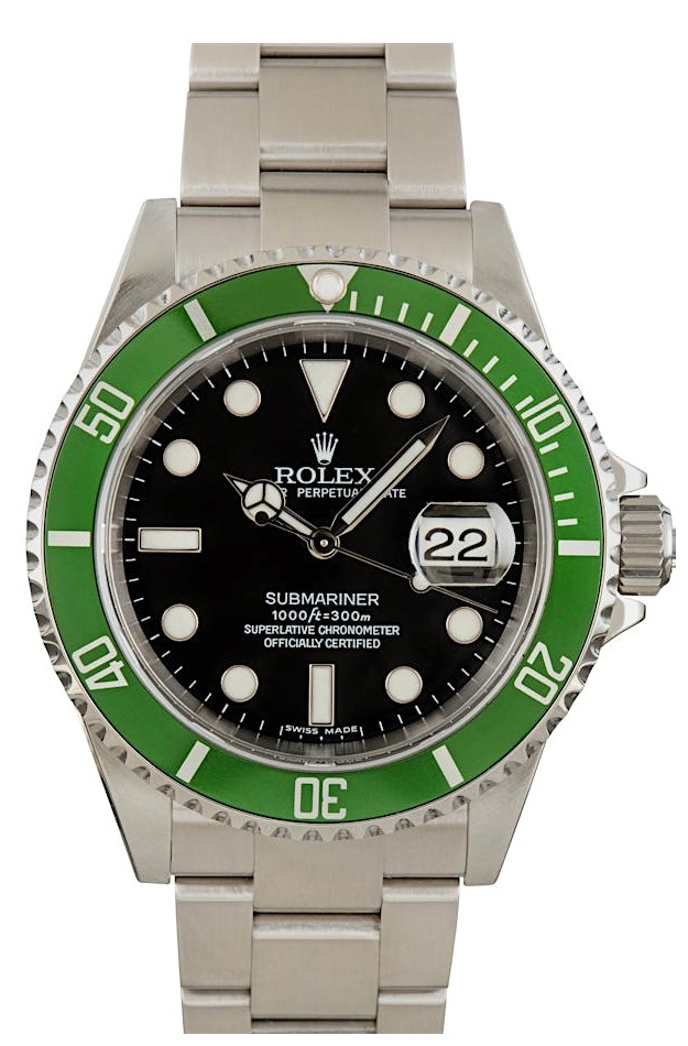 This unique green bezel made traditionalists clutch their pearls and collectors open their wallets. Produced only until 2010, it’s now harder to find but easier if you’re willing to pay the $12,000 to $16,000.