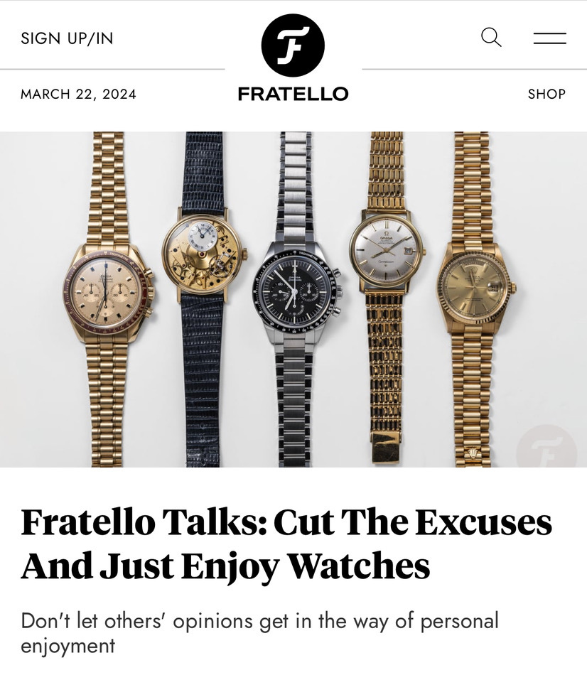 Yes, watch journalists get to handle the new APs and Pateks of the world, but it doesn’t mean they are buying or own all of these amazing pieces. He notes that part of their job is to help get the word out and that social media has led to an image that everyone who has an account also has these amazing timepieces, thus the FOMO sets in. I appreciated that sentiment in a way that struck a nerve in a good way, and I wanted to articulate my appreciation beyond what an Instagram reel would allow - though I appreciate the Fratello shout out I got in their stories! Cheers for that!